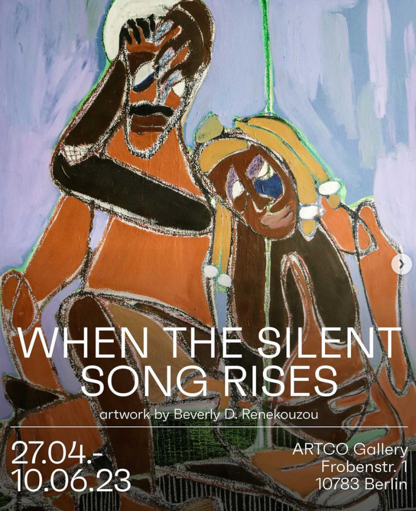 WHEN THE SILENT SONG RISES is a group exhibition presenting works by Beverly D. Renekouzou, Exocé Kasongo, Melody Howse, Thomias Radin, Selassie and Elihu Ashong presented at ARTCO Gallery Berlin.