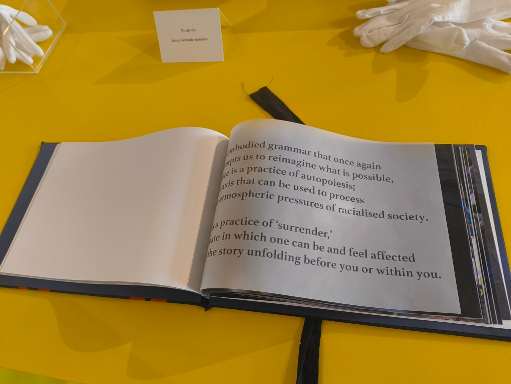 In June 2025, I had the honour of being Mel Chin & Jess Row’s hype girl for the For Real For Real exhibition that was installed in Berlin’s Kreuzberg over the summer. I was invited to create a book for the show curated by Claudia Rankine, John Lucas & Russel Salmon as part of the work of the Racial Imaginary Institute and do a reading based on the work. What emerged was “Spirits In The Cypher” an ode to dance and political movements of Black liberation. The book contains images from my film ‘Joy’ and my writing on the themes. What’s particularly special for me is that the book is bound in an original T Shirt form the BLM demo from 2022 where Joy was shot. Thank you to Mic Oala for having a spare so that I could continue the resonance over image, sound, page and text.